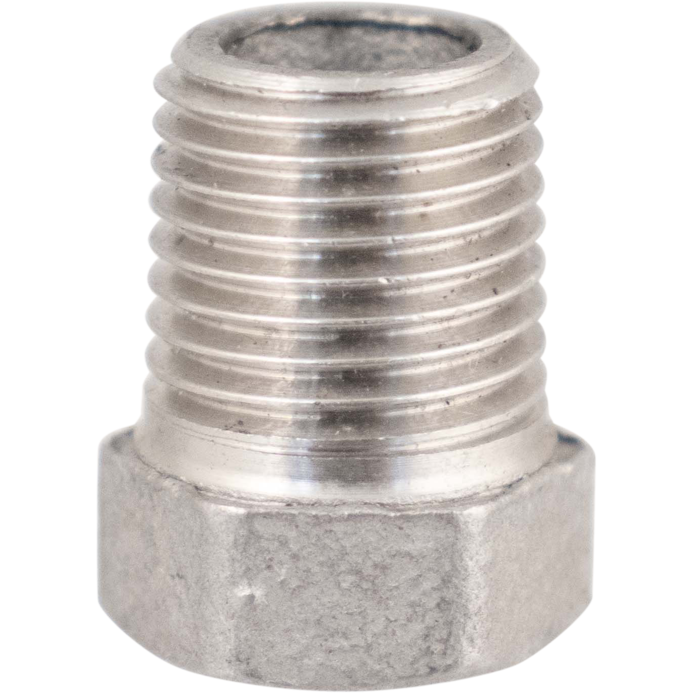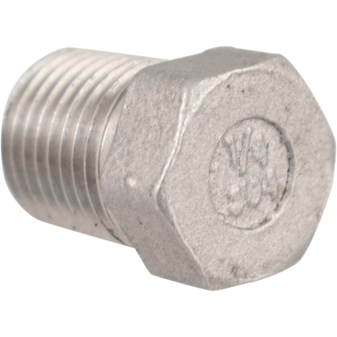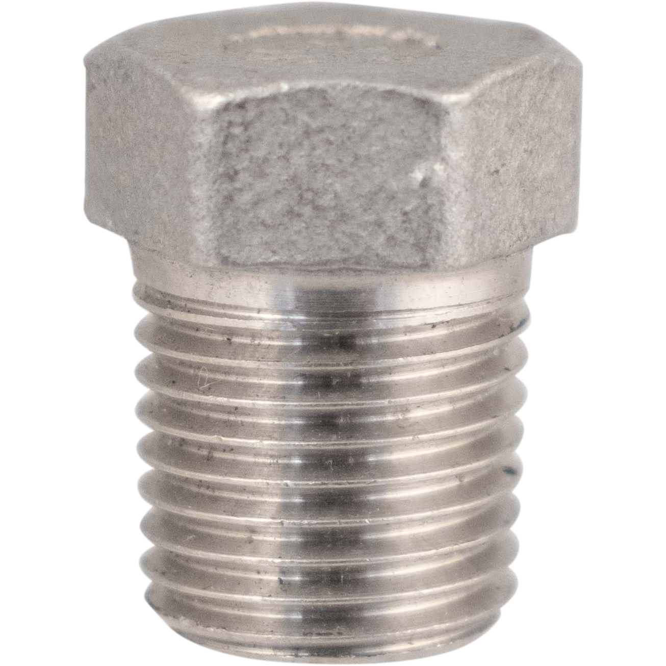 1/4" male BSPP stainless steel plug. Hex head design for easy installation or removal with a wrench.