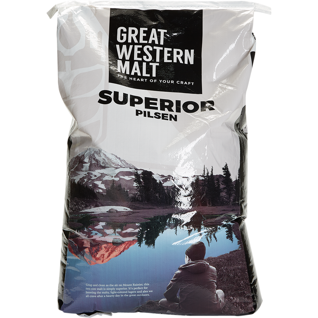 1.6 °L - Great Western Malting - Superior Pilsen - Very pale, well modified, base 2 row malt. Perfect for brewing malty light-colored lagers, ales and beers where a crisp, clean finish is desired. (1.6°L)